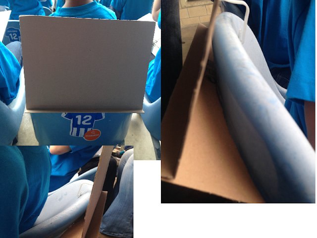 Hubo quien pensó un poco más y realizó con un simple cartón y una pinza de sujetar manteles y un atril que se puede colocar en los asientos de anoeta. En este atril, se pueden colocar las partituras reducidas sujetas con una pinza (aunque el día sea bueno, corre el viento).