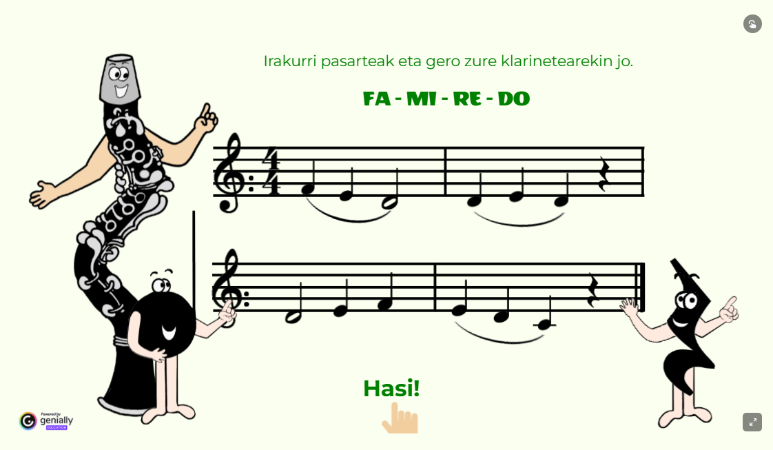 Klarinetea nola egiten den azaltzen den bideoa ikusi eta gero denborapasak egin dena ondo ikasi duzun egiaztatzeko.